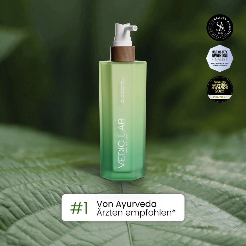 Kann das Produkt echt empfehlen. Zieht mega schnell ein, kein Rückstand. Diese ayurvedischen Inhaltsstoffe sollen ja super für Haare und Kopfhaut sein, also sehr nice, dass die jetzt alle in einer Flasche drin sind.